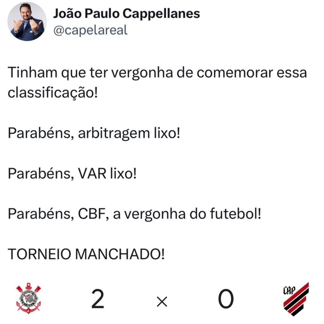 Warning: Attempt to read property "ID" on null in /home/tvcantamutum.com.br/public_html/wp-content/plugins/social-share-watermark/social-media-Share-Watermark.php on line 116 O jornalista Cappellanes ficou revoltado com a derrota do Athletico-PR. - PROCURE EM NOVA MUTUM