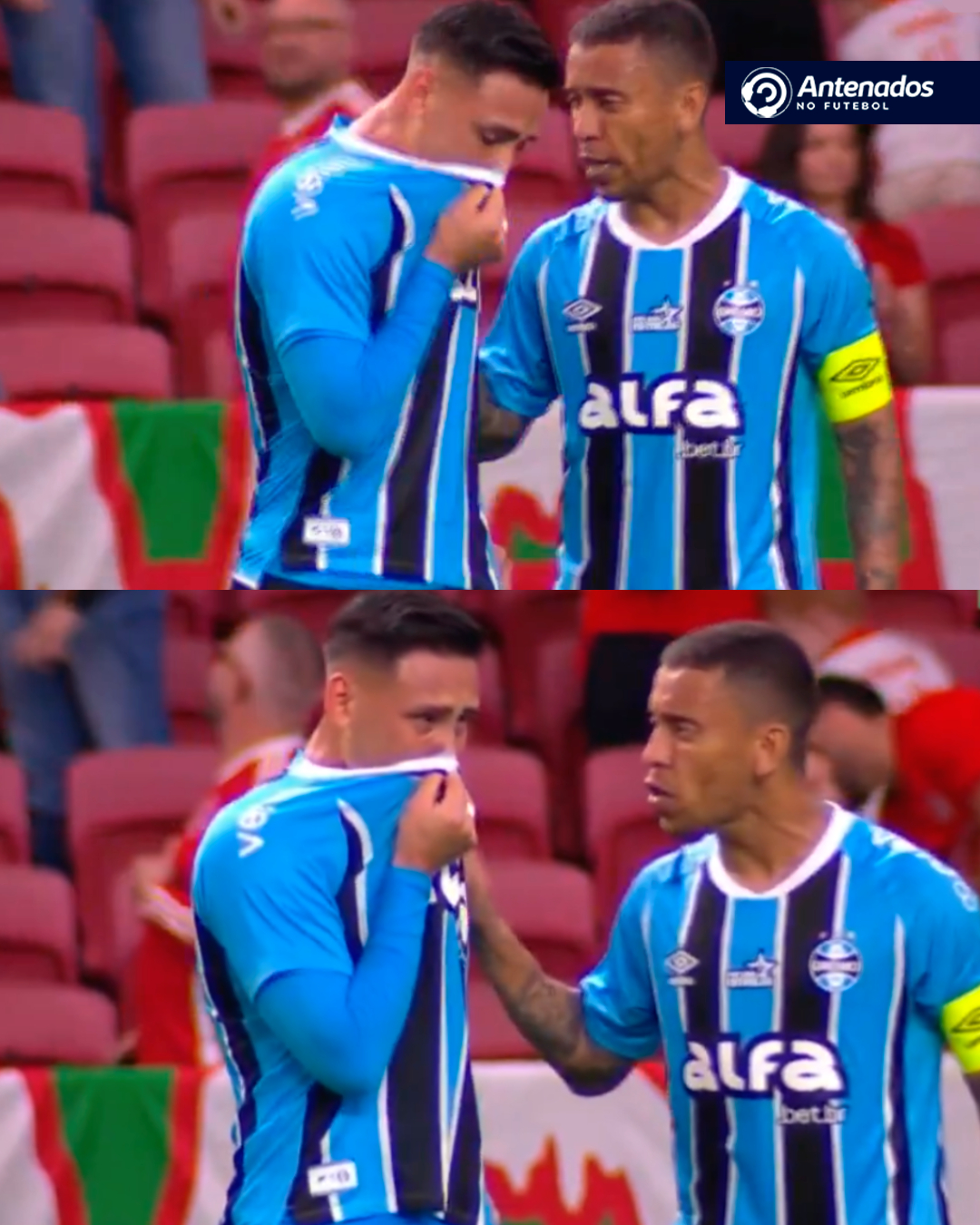 💔🇵🇪 Dia difĂcil no Gre-Nal: Erick Noriega foi Ă s lĂĄgrimas apĂłs cometer dois pĂȘnaltis. Willian e Marcos Rocha demonstraram fair play e consolaram o volante peruano em campo. 🤝⚽