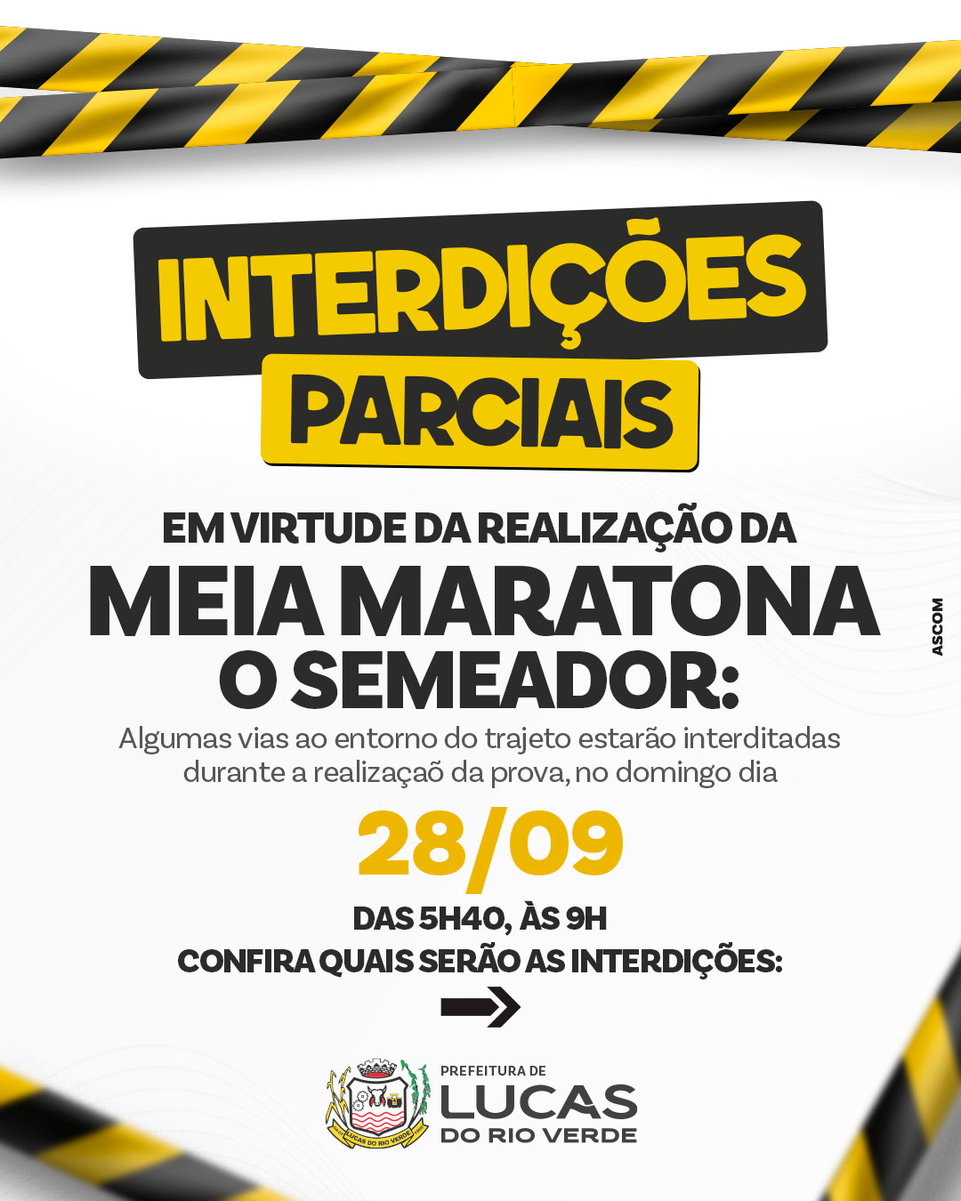 Nossa cidade se prepara para um grande domingo de esporte e superação! E para que a corrida seja um sucesso e ocorra com total segurança, faremos algumas interdições parciais no trânsito.