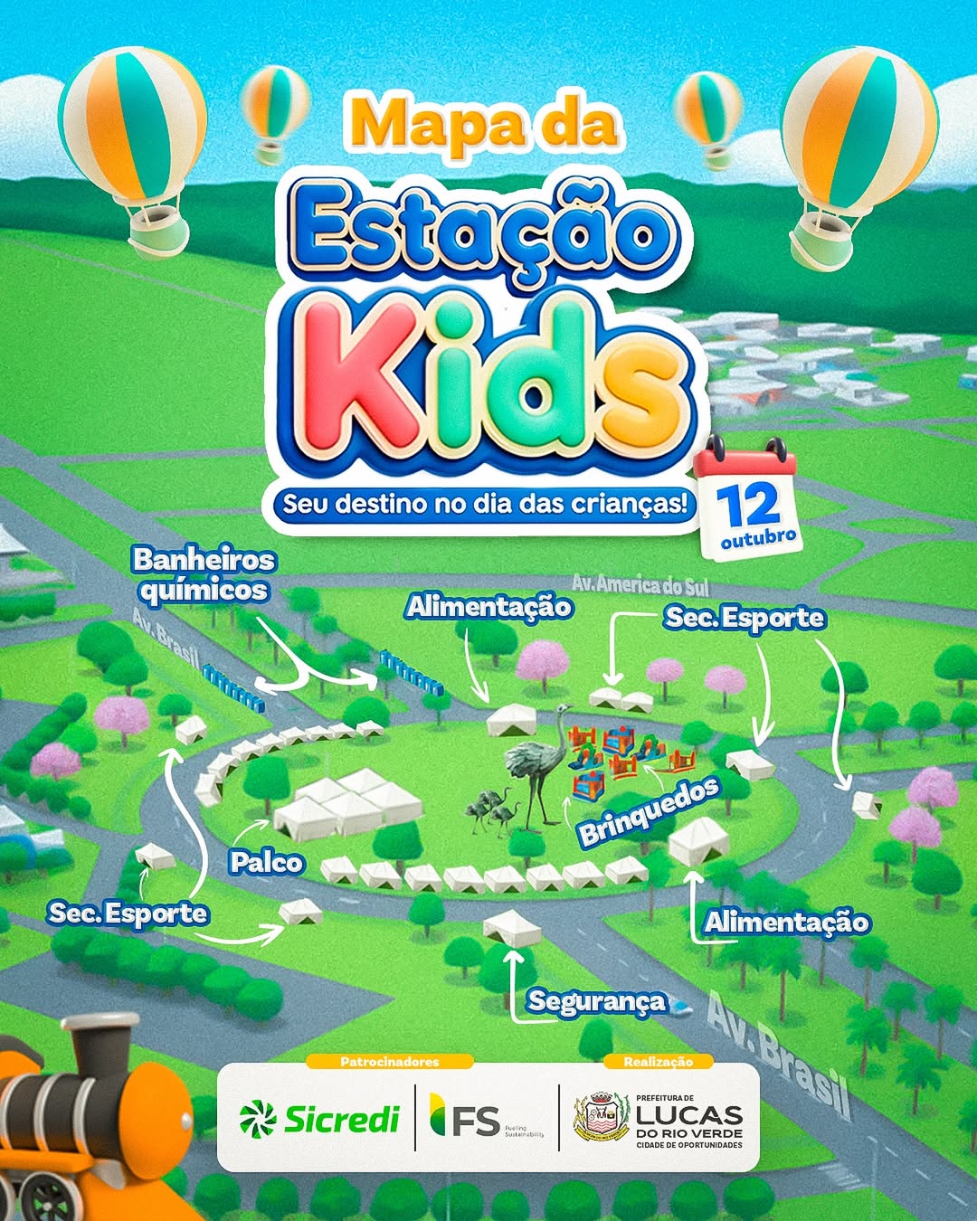 #EstaçãoKids #DiaDasCrianças #LucasDoRioVerde #MapaDoEvento #DiversãoEmFamília #12deOutubro #PrefeituraLRV