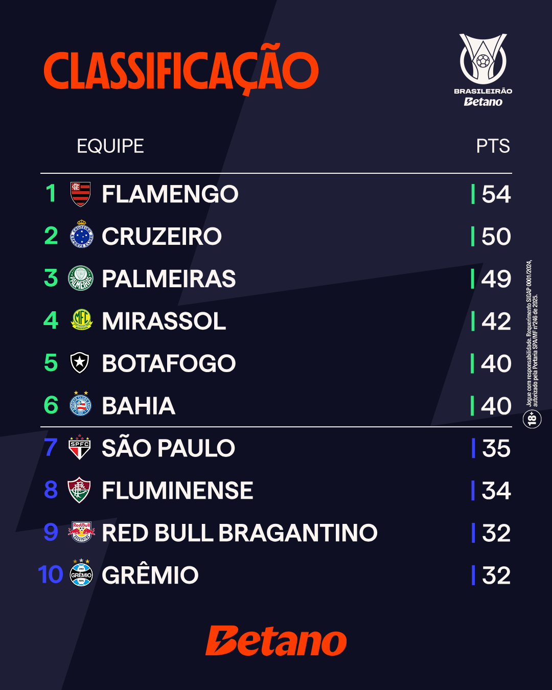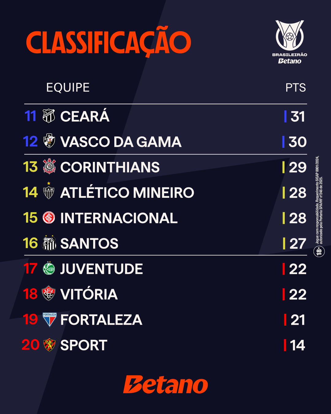 A classificação do Brasileirão Betano após 25 rodadas! O que está achando do …