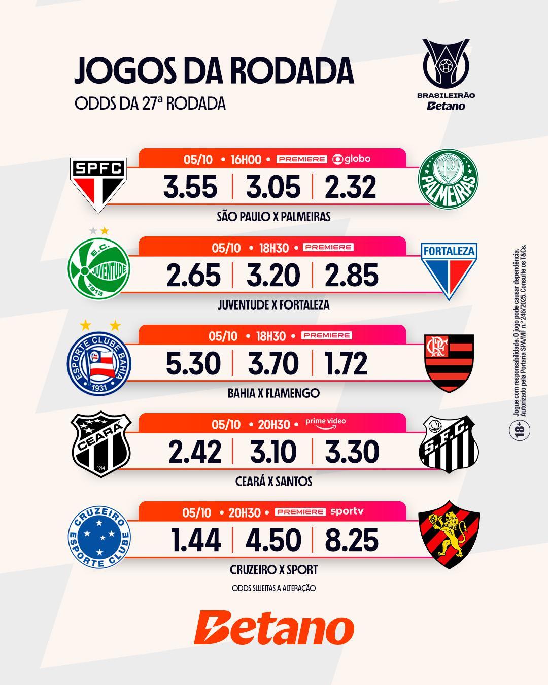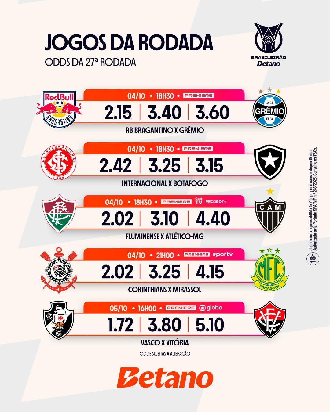 O campeonato está entrando na reta final, então confere aqui todas as informações e odds da 27ª rodada.