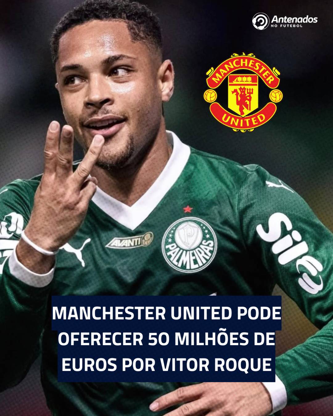 🇧🇷🤑 O Manchester United surge como um dos interessados em Vitor Roque. Vale lembrar que o valor envolvido é o dobro do que o Palmeiras pagou pelo atacante, cerca de 25 milhões de euros.