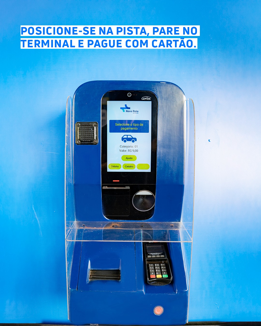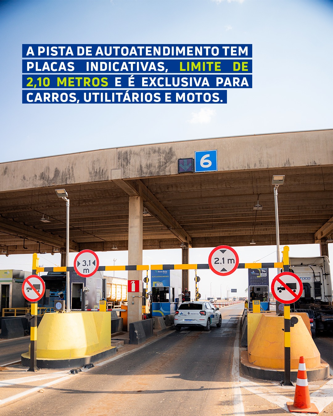 Para tornar sua viagem mais prática e rápida, agora temos uma pista exclusiva de autoatendimento em cada sentido da praça. Veja como funciona: