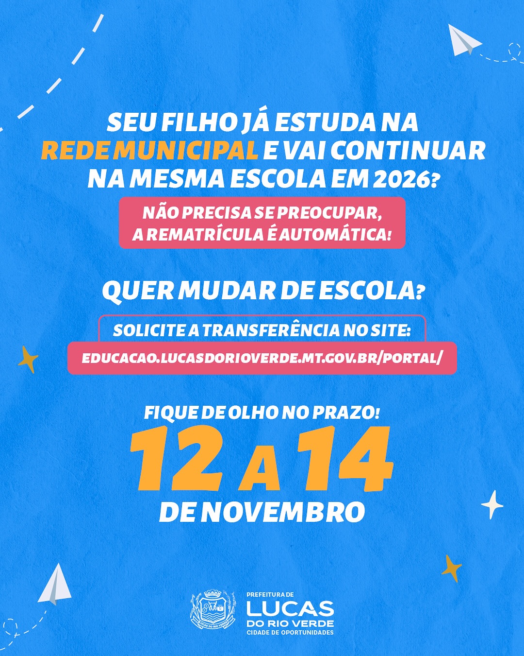 #PrefeituraLRV #Educação #LucasDoRioVerde #Rematrícula2026 #VagasEscolares
