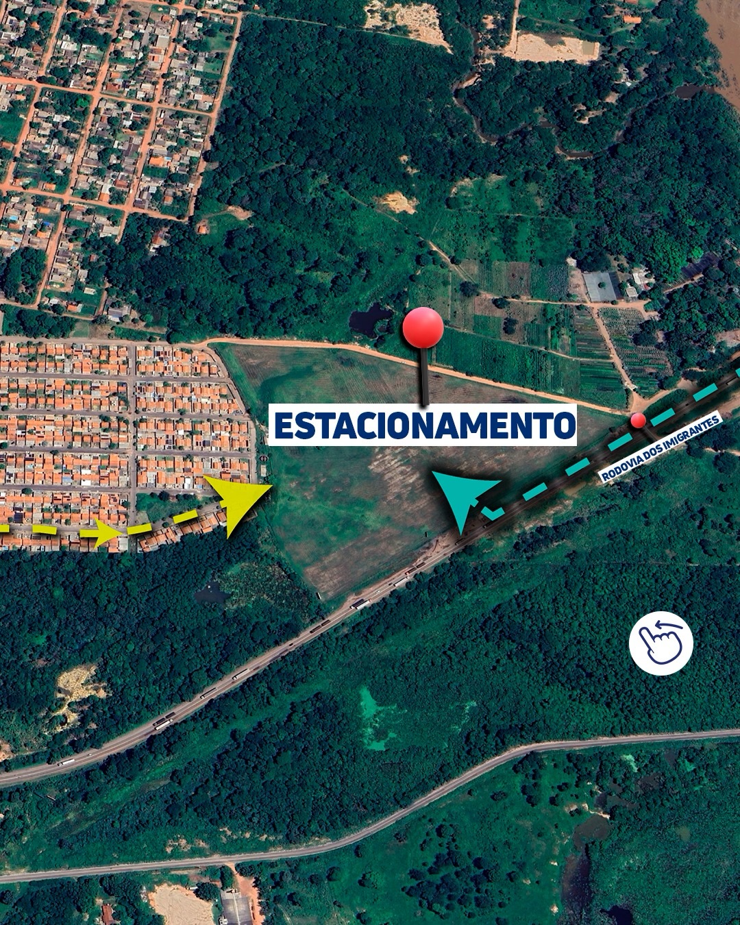 Vindo do bairro Costa Verde, siga pela Rodovia dos Imigrantes, acesse a Av. Leôncio Lopes de Miranda, entre na Rua 1 e chegue direto ao estacionamento da corrida.